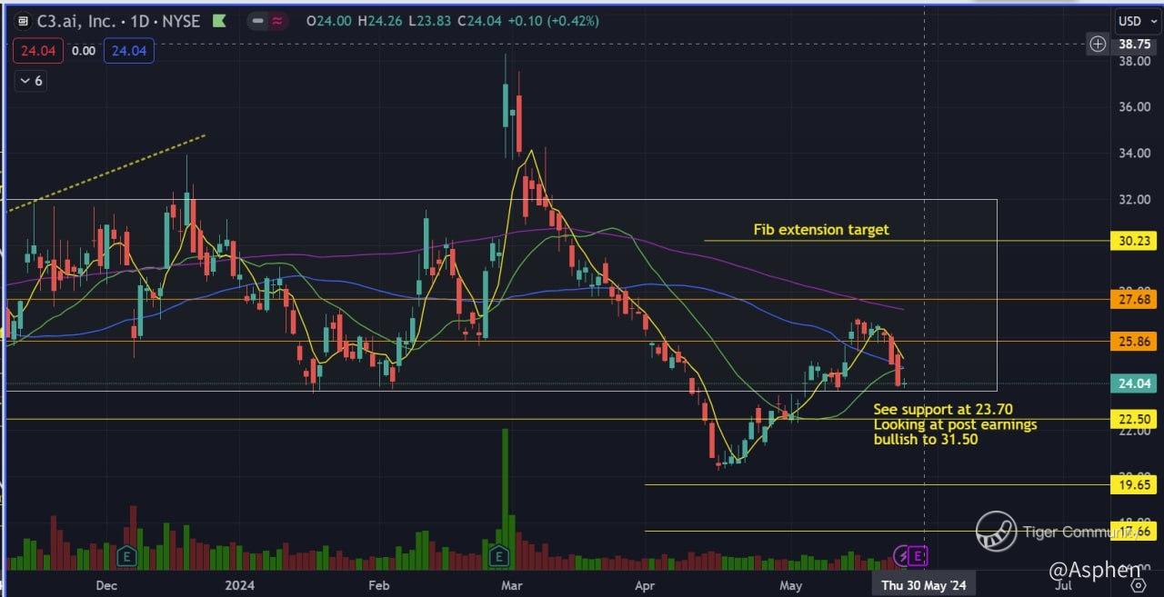 - Since the previous earnings gap up, C3.AI has come down 47% and recently recovered abit