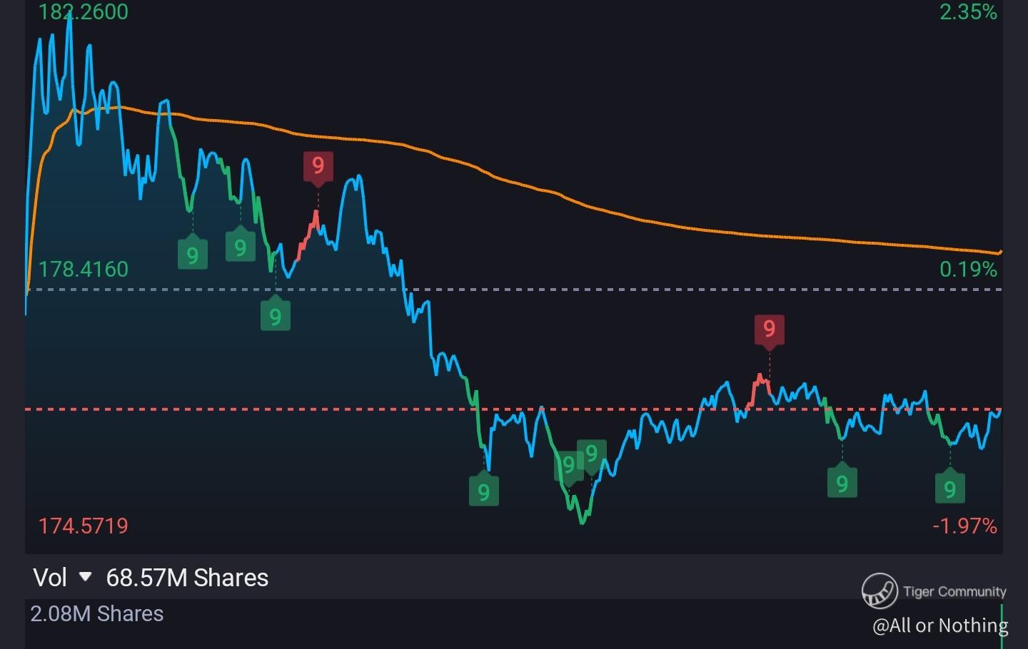 However, it has lost its momentum at a high of 182.26 and started its descent towards a low of 174.57. 📉 Took the opportunity to buy put and watched the magic happen with my mate @Barcode , and took profit at a fair price. 🥂🤝