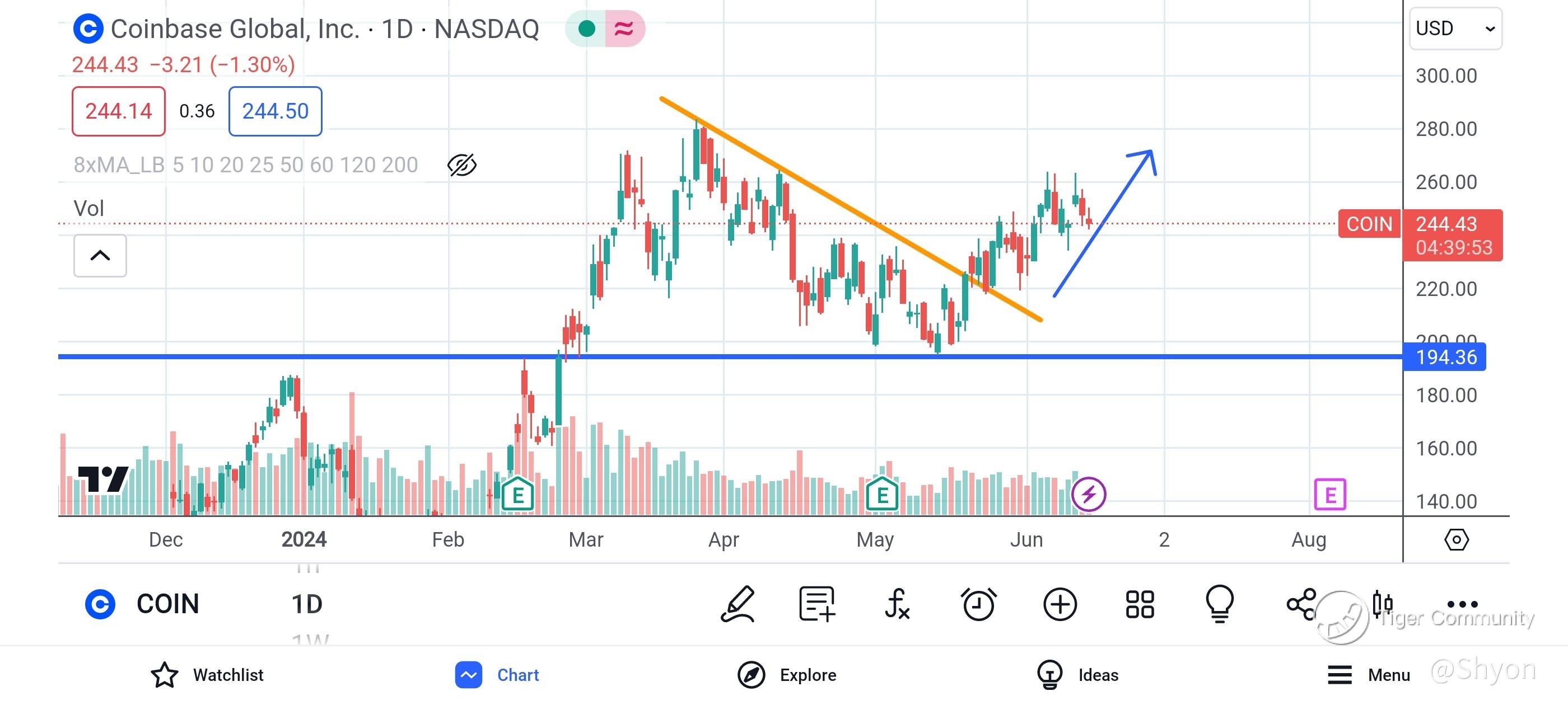 Not too bad and slightly bullish month for crypto since June! For COIN, the chart already formed several higher lows after broke out from the orange coloured downtrend resistance line. I believe $Coinbase Global, Inc.(COIN)$