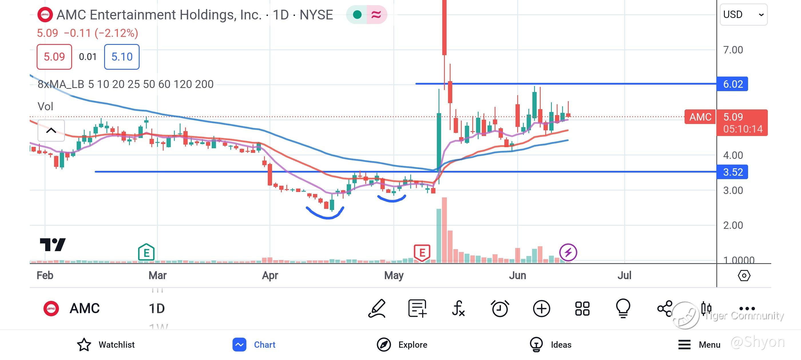 However, if we look purely on AMC from technical aspect, it seems like the stock is ready for another wave of rally. For this week, each trading day ends with the candle at the higher position, moving up like a staircase. Also, with all the EMA lines facing upwards, I believe AMC $AMC Entertainment(AMC)$
