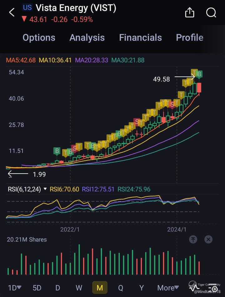 $Vista Energy(VIST)$ has been the No1 portfolio stock due to its steady growth, relative immunity to general market volatility, strong institutional support, company buybacks. Started in 2021 when its about $7, till current $43. Top rank.