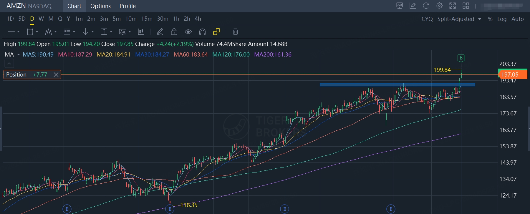 $Amazon.com(AMZN)$ rosed up by 2.19% show an 3-year rang break out.