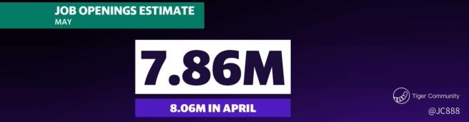 Analysts have forecasted May’s data to come in at 7.86 million open jobs. (see above)