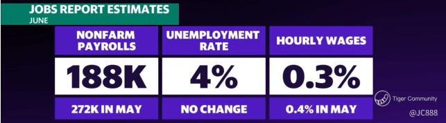 US jobs market is expected to come in with 188,000 jobs. (see above)
