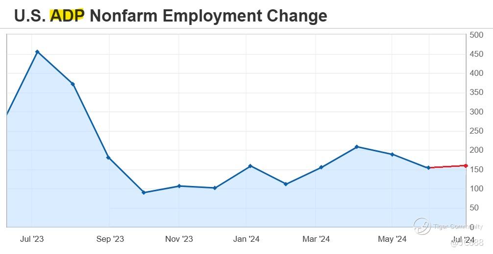 US private non-farm payroll for June 2024 is forecasted to come in at 156,000. (see above)