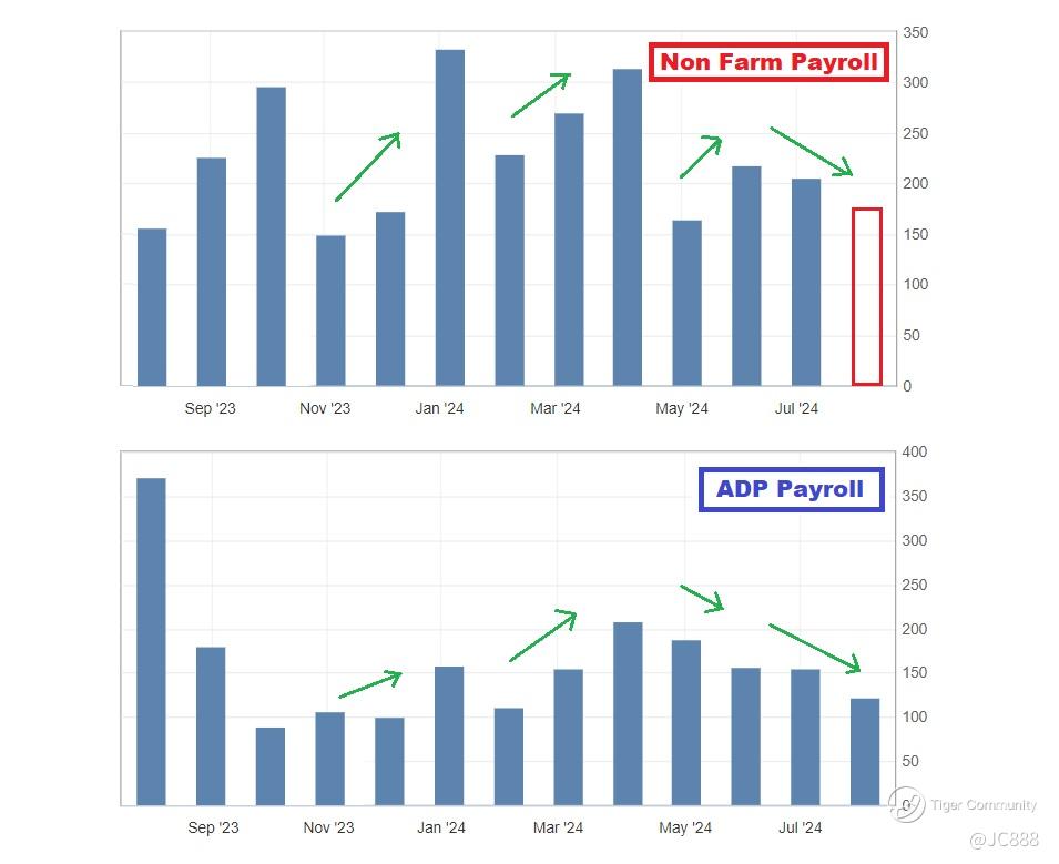 Although not entirely an apple-to-apple comparison, could refer to the ADP payroll July 2024 data to get a sense of how the Non Farm payroll is heading. (see below)