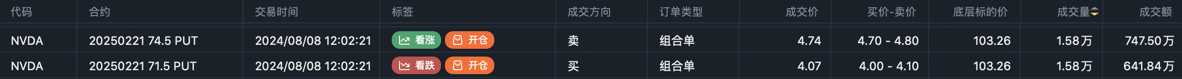 Defensive Bear Put Spread: Selling NVDA 20250221 74.5 Puts, Buying 71.5 Puts