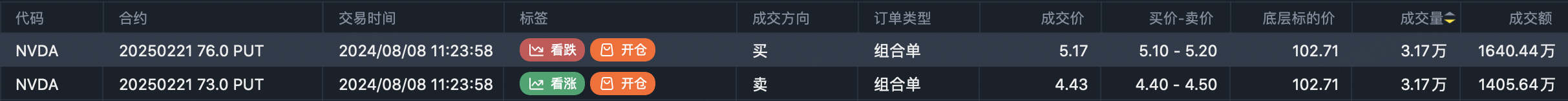 Bearish Put Spread: Buying NVDA 20250221 76 Puts, Selling 73 Puts