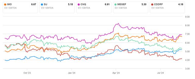 As illustrated by the graphic below, at least two members of the Canadian heavy oil cohort have had a good first half of 2024. I refer to Canadian Natural Resources (CNQ), and the subject of this article, Imperial Oil Limited (NYSE:IMO). On an EV/EBITDA basis they've outperformed smaller members of the heavy oil cohort, including, notably, Suncor (SU), a subject of a past favorable article that recommended SU in the twelve's (now at $40).