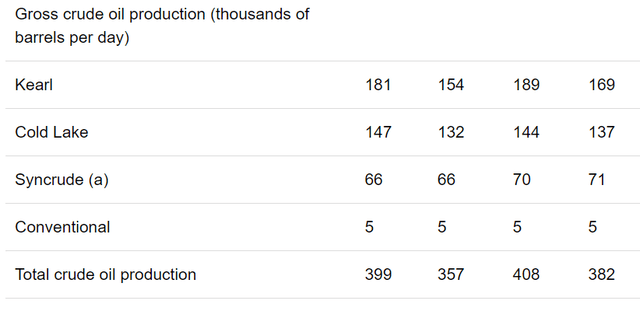 Technology is also playing a role as these companies look to minimize fuel costs and boiler intensity in their operations. IMO is keeping pace with the industry with its solvent assisted SAGD operations in Cold Lake and the in-pit tailings reduction project in Kearl. We have previously covered IMO in detail, and new readers are advised to read those older articles for more detail.
