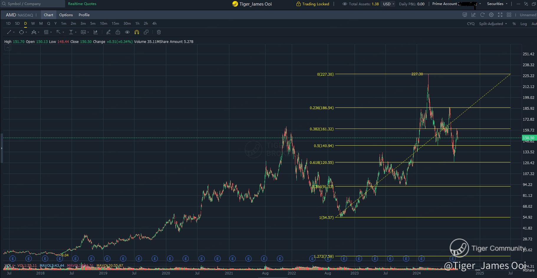 AMD $Advanced Micro Devices(AMD)$ stock is up 2.1% year-to-date, currently trading at $150.5, which is 28.8% below its all-time high of $211.38.