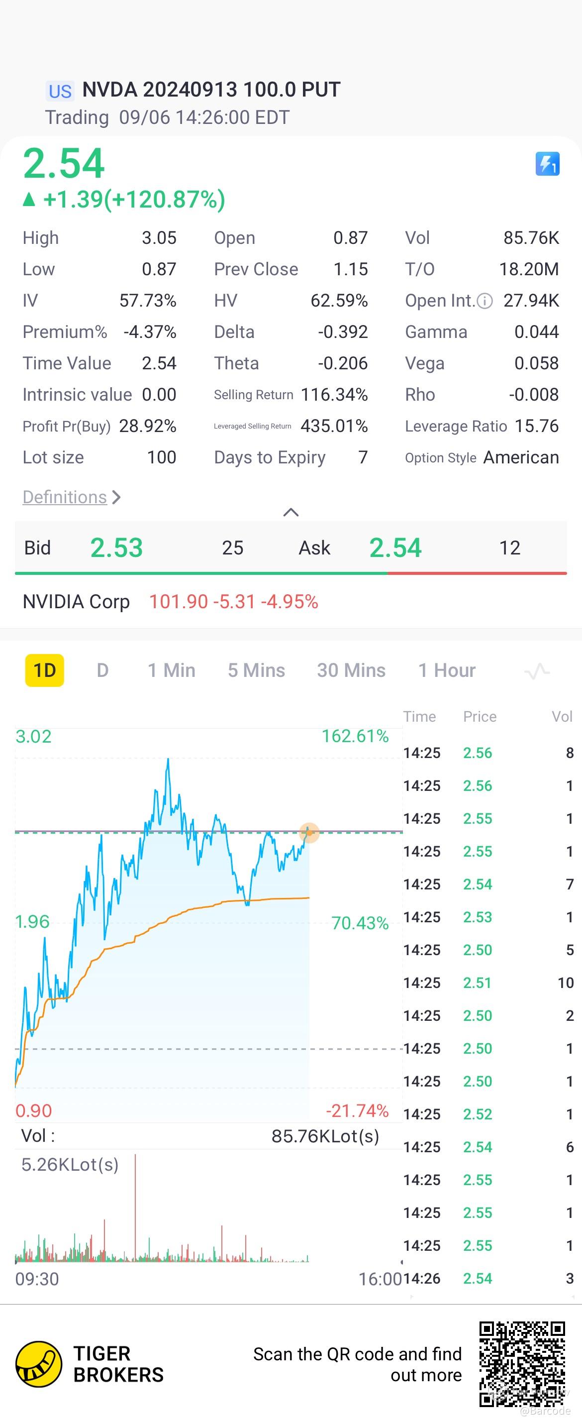 $NVDA 20240913 100.0 PUT$ I opened positions on this Put Option as Head and Shoulders is forming on the 5 minute chart $NVIDIA Corp(NVDA)$ and I expect a drop to $97.40 in the next few days. 📉 Happy trading ahead, cheers BC 🍀