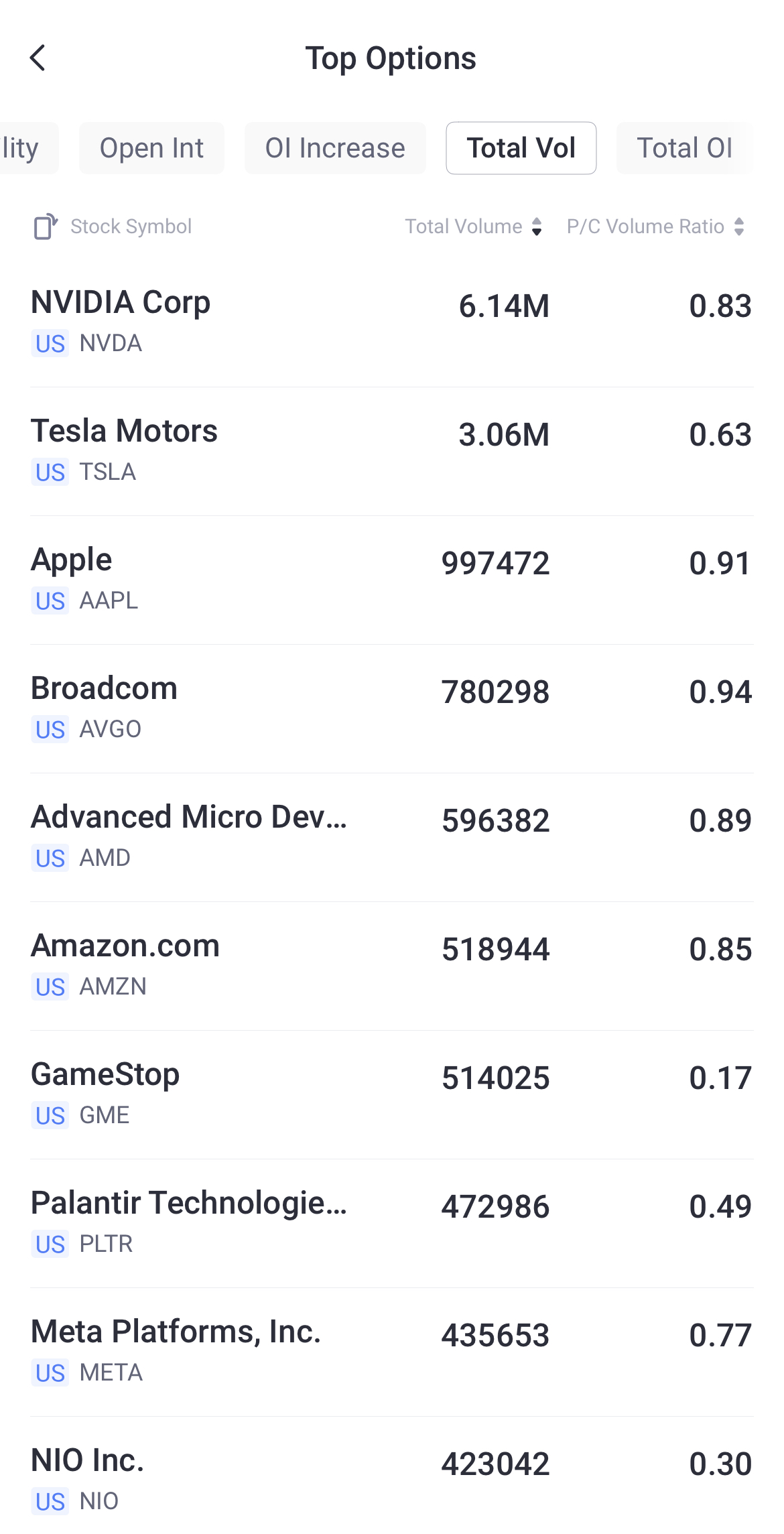 Top 10: $Nvidia(NVDA)$, $Tesla(TSLA)$, $Apple(AAPL)$, $Broadcom(AVGO)$, $AMD(AMD)$, $Amazon(AMZN)$, $GameStop(GME)$, $Palantir(PLTR)$, $Meta(META)$, $Nio(NIO)$