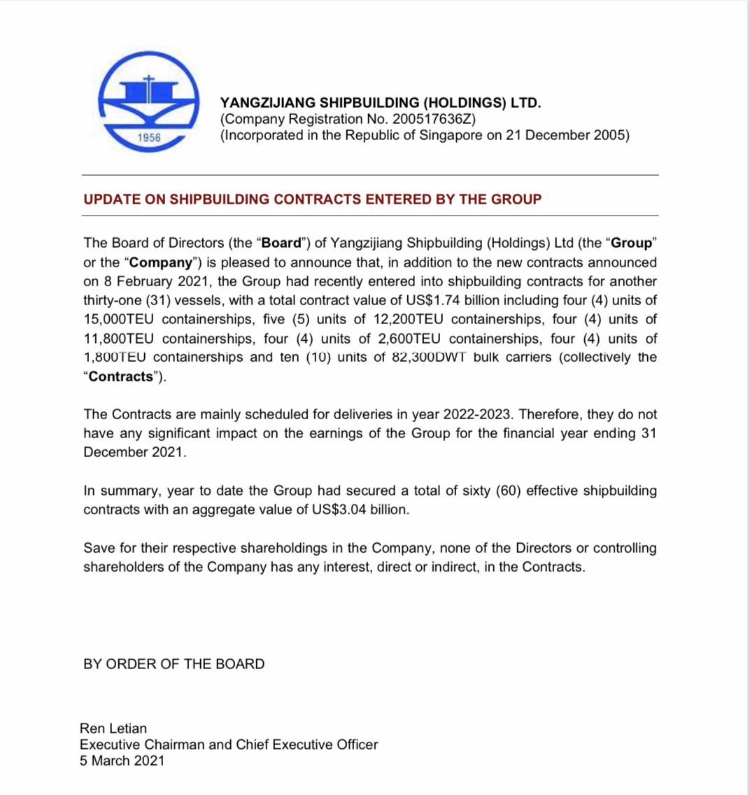 $YANGZIJIANG SHIPBLDG HLDGS LTD(BS6.SI)$