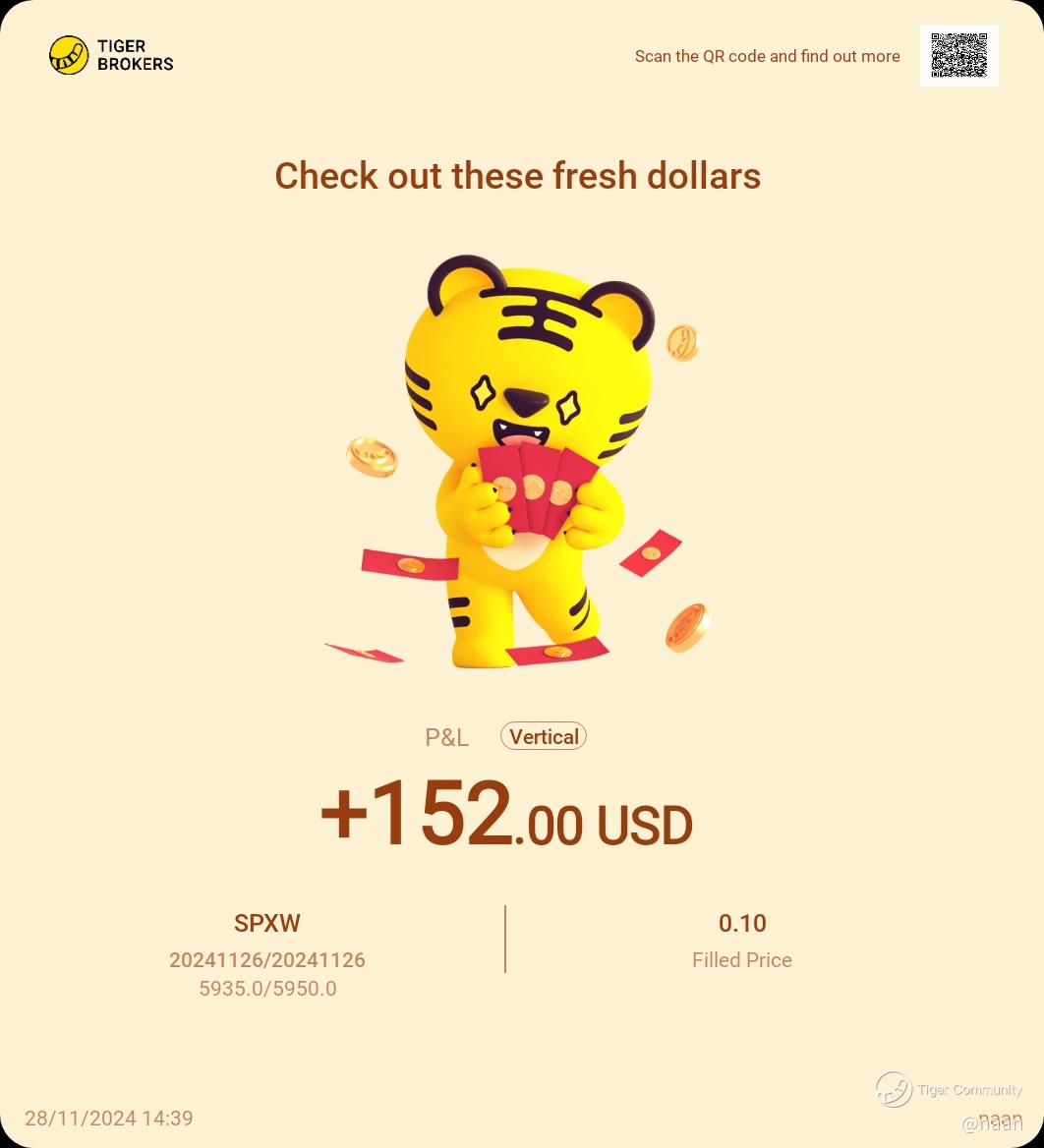 $SPXW VERTICAL 241126 PUT 5935.0/PUT 5950.0$ VCS Put worked well as targeted