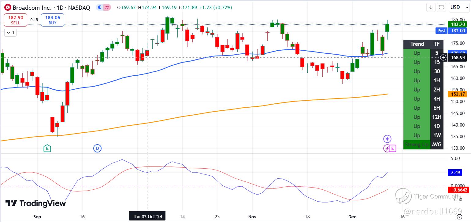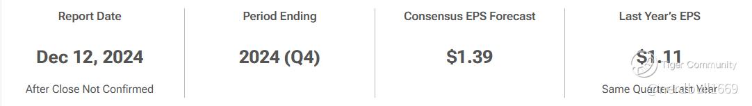 $Broadcom(AVGO)$ is expected to report its quarterly earnings for the period ending 31 October 2024 on 12 December after market close.