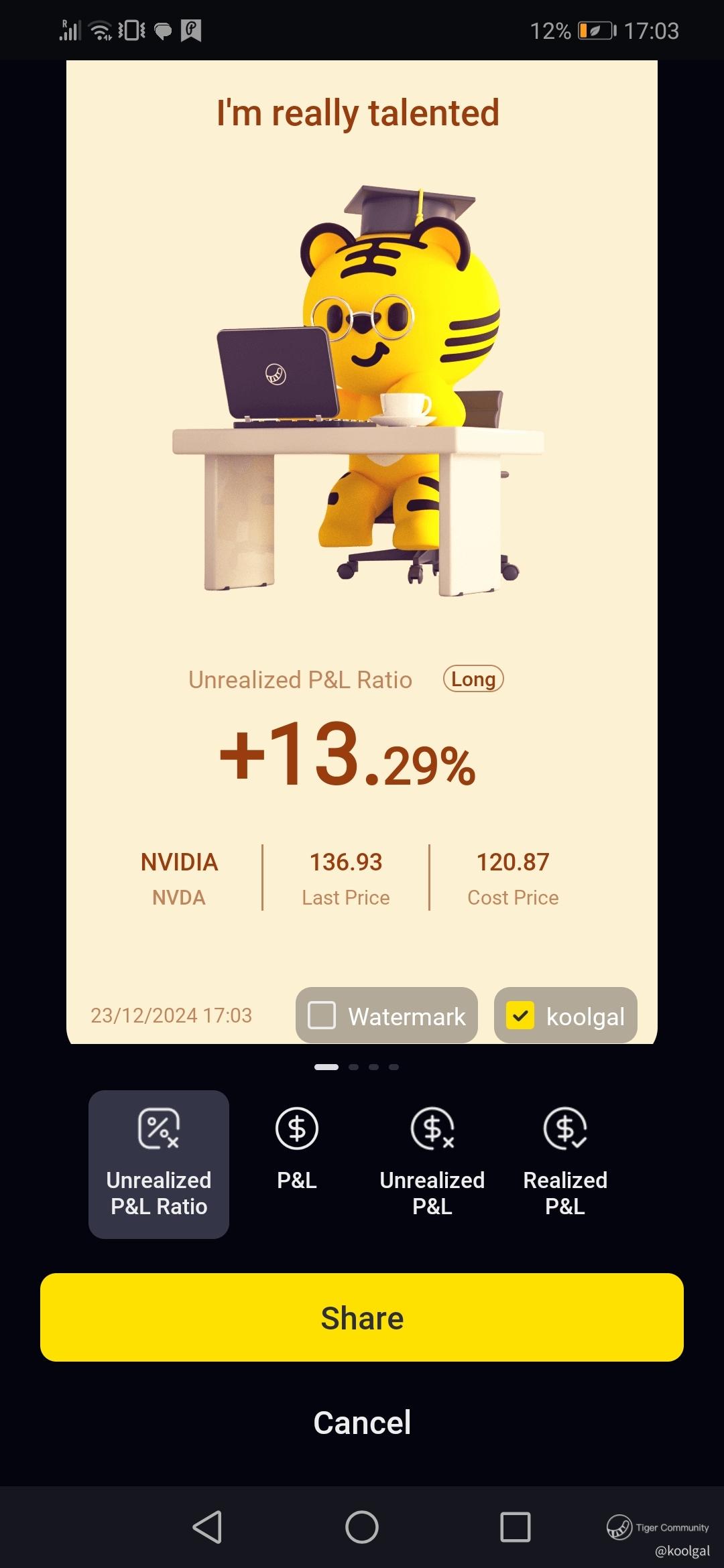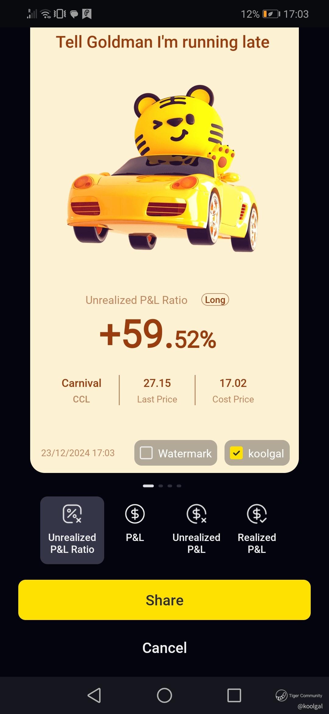 I have invested in Carnival 3 months ago as I could see that it was undervalued. I am happy that my conviction has paid off as Carnival is heading into 2025 with record bookings at higher prices. I am happy with Carnival's performance as I am currently up by 59%.