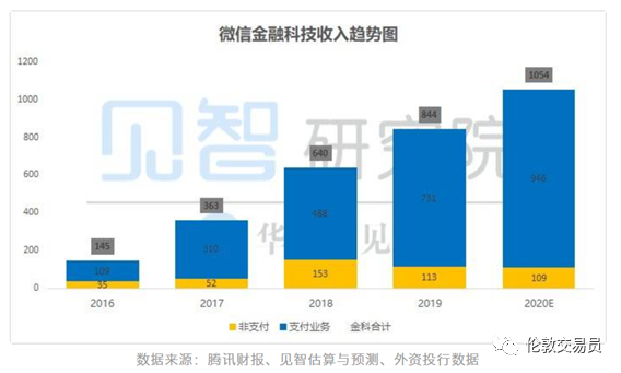 雖然騰訊系把持着C端社交流量,但不同於把高毛利的金融業務玩得很溜的阿里 ,微信支付的主要營收還是來自於沒啥油水的支付業務。