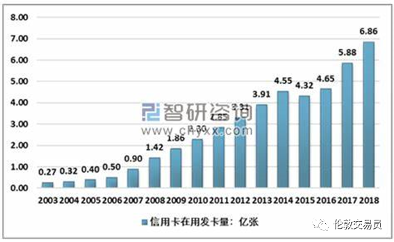 圖:中國直到2007年之後,信用卡才逐步普及開來