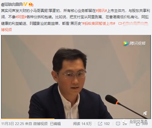 雖然螞蟻上市沒戲了,但依然比騰訊金融更值錢。只要作爲利益輸送方的阿里別再出大錯,作爲利益接收方的螞蟻數錢還是很舒服的。