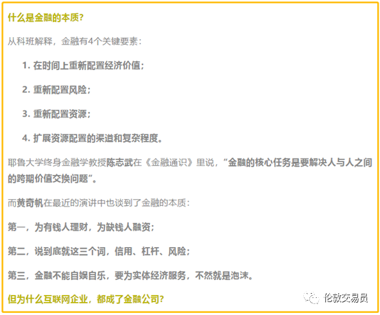 3. 最後纔是螞蟻、微信正在佈局的創新業務(我們之後再談)。這些業務的目的是自動解決資源配置問題,這纔是真正意義上的"金融科技"業務,但目前阿里騰訊其實都纔剛剛涉足,還處於講故事階段。