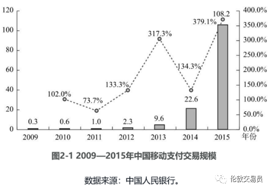 隨着移動支付的愈發便利,再疊加上移動用戶規模的高速增長(下圖一),移動支付的交易規模從2010年開始做上了火箭(下圖二)。