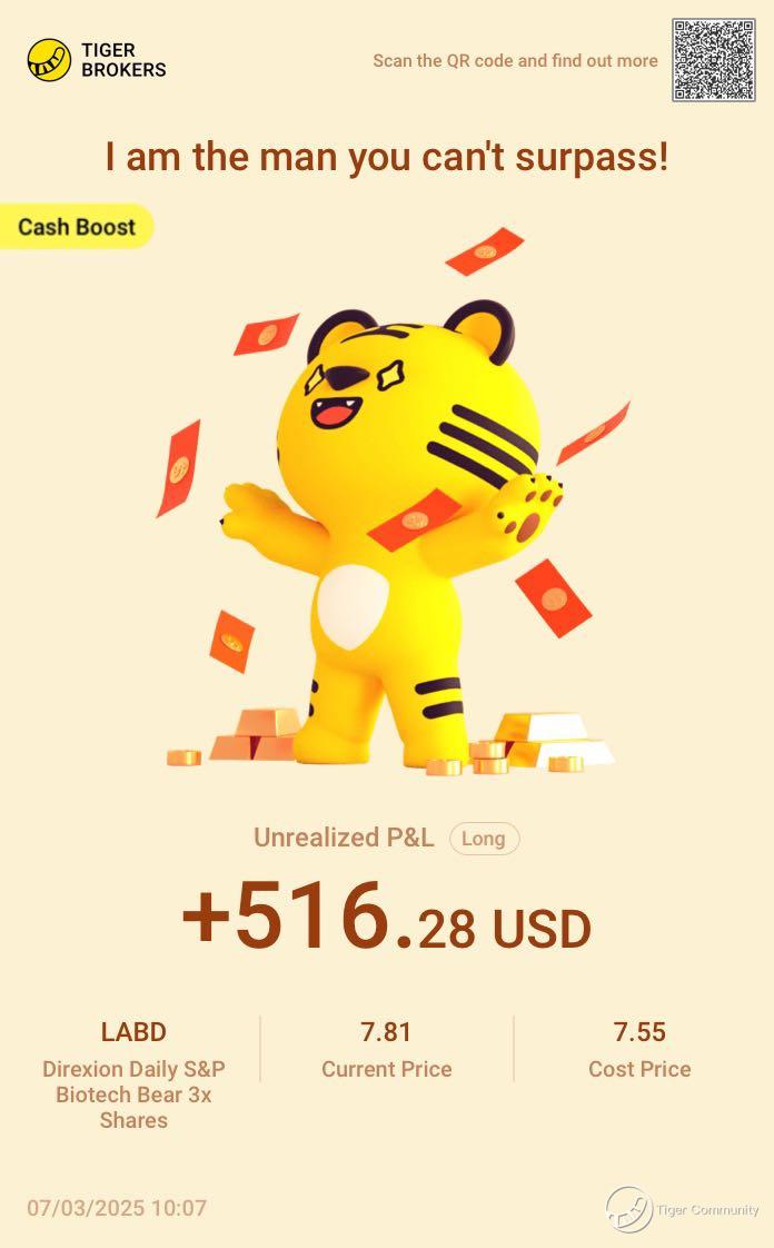 $Direxion Daily S&P Biotech Bear 3x Shares(LABD)$ Volatility in the U.S. stock market is nothing new—big swings are just part of the game. Since the outlook is bearish, I’m adding more LABD to hedge my position. The bigger the swings, the greater the opportunities!