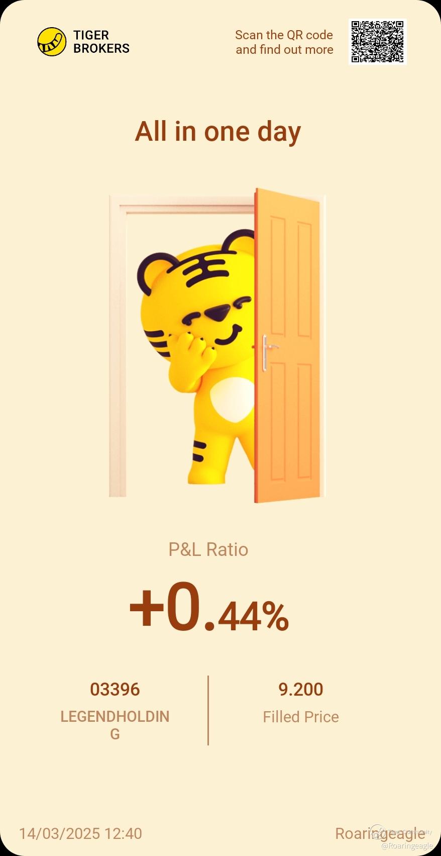 $LEGENDHOLDING(03396)$ nice try for a tiny profit