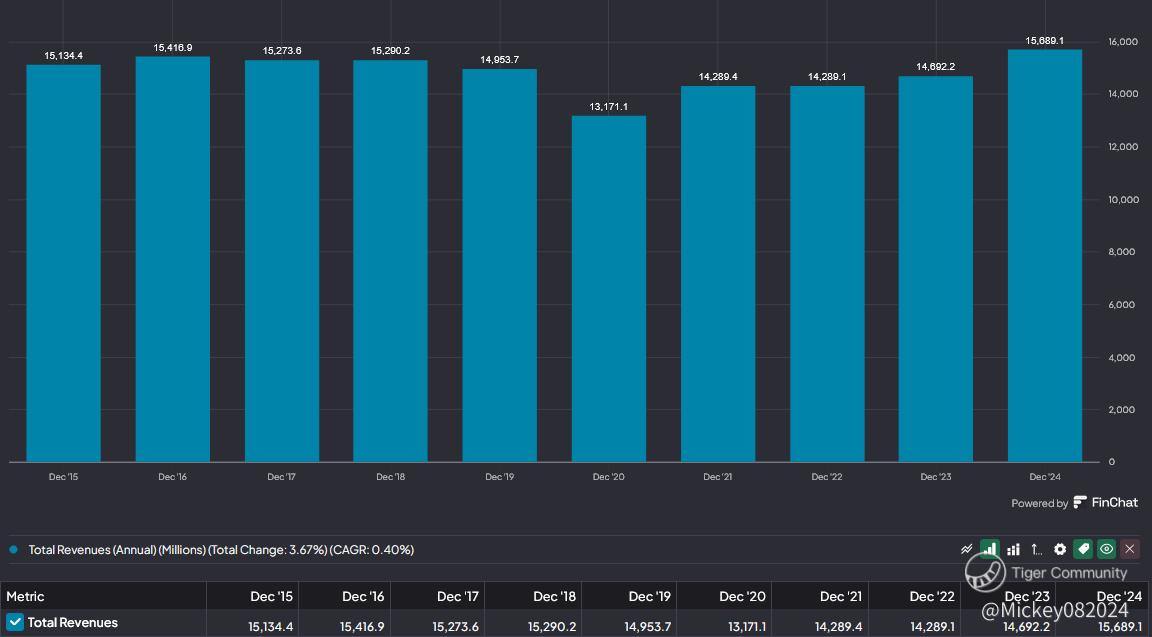 Looking at revenue growth, Omnicom has expanded by just over 3% per year over the past three years, which aligns with the 10-year earnings expectation. However, when adjusting for inflation, its real revenue growth rate is only about 1% per year—essentially stagnant.