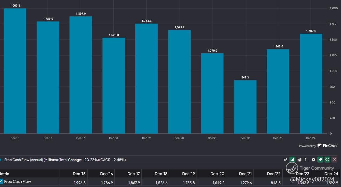 Another key factor is share buybacks. Over the past 10 years, Omnicom has repurchased about 20% of its outstanding shares, which inflates earnings per share (EPS) without true underlying growth. If we strip out the impact of buybacks, real earnings growth drops from 6.72% to just under 5%.