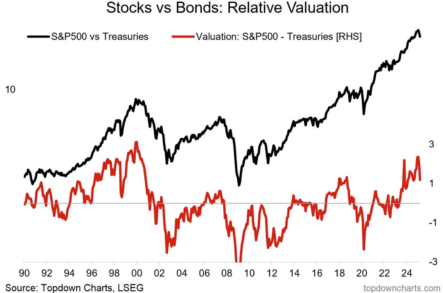 As things currently stand, there is a long way to go before we can get excited about stocks vs bonds from a valuation standpoint, and if anything you typically see downside overshoot during periods of mean reversion like this.