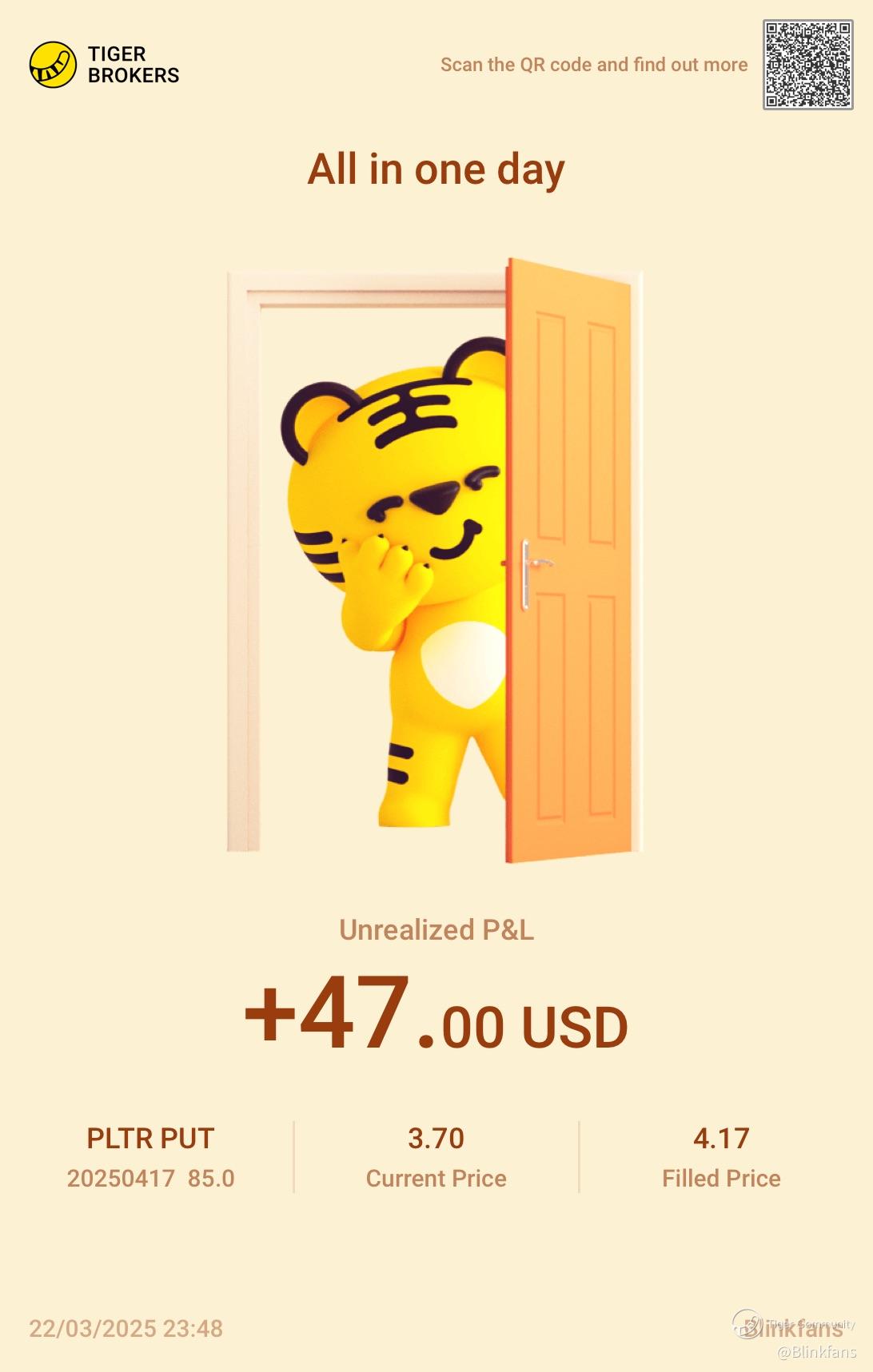 I will continue using this dynamic approach to generate consistent income and optimize risk-reward ratios!$PLTR 20250417 85.0 PUT$ $PLTR 20250417 85.0 PUT$ @TigerTradingNotes @Daily_Discussion @TigerStars @MillionaireTiger