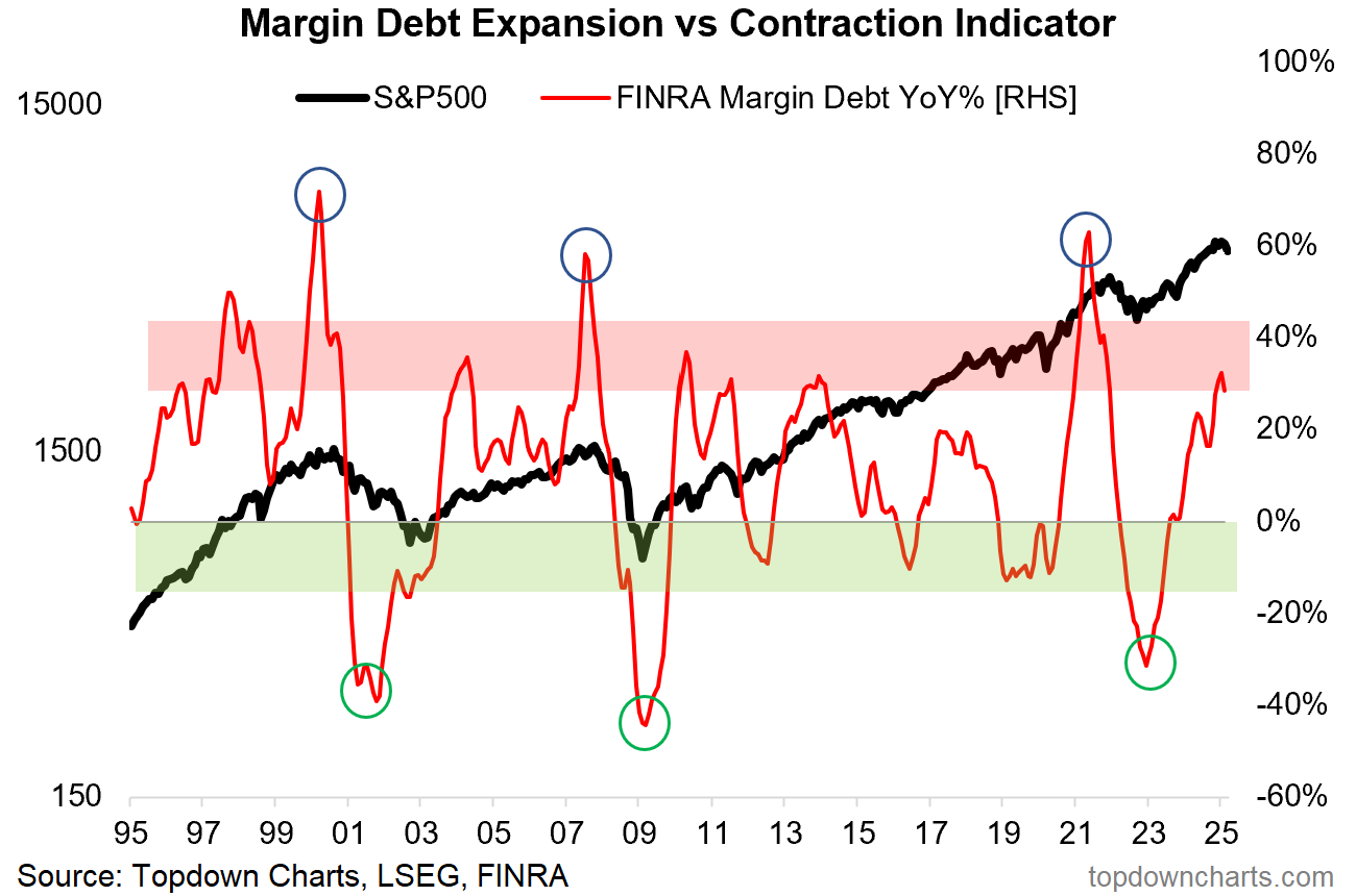 Longer-Term Reservations: here’s the latest update to that margin debt chart I flagged a few weeks ago — the risk signal has now intensified because following the move into the redzone it has now turned down off the high.