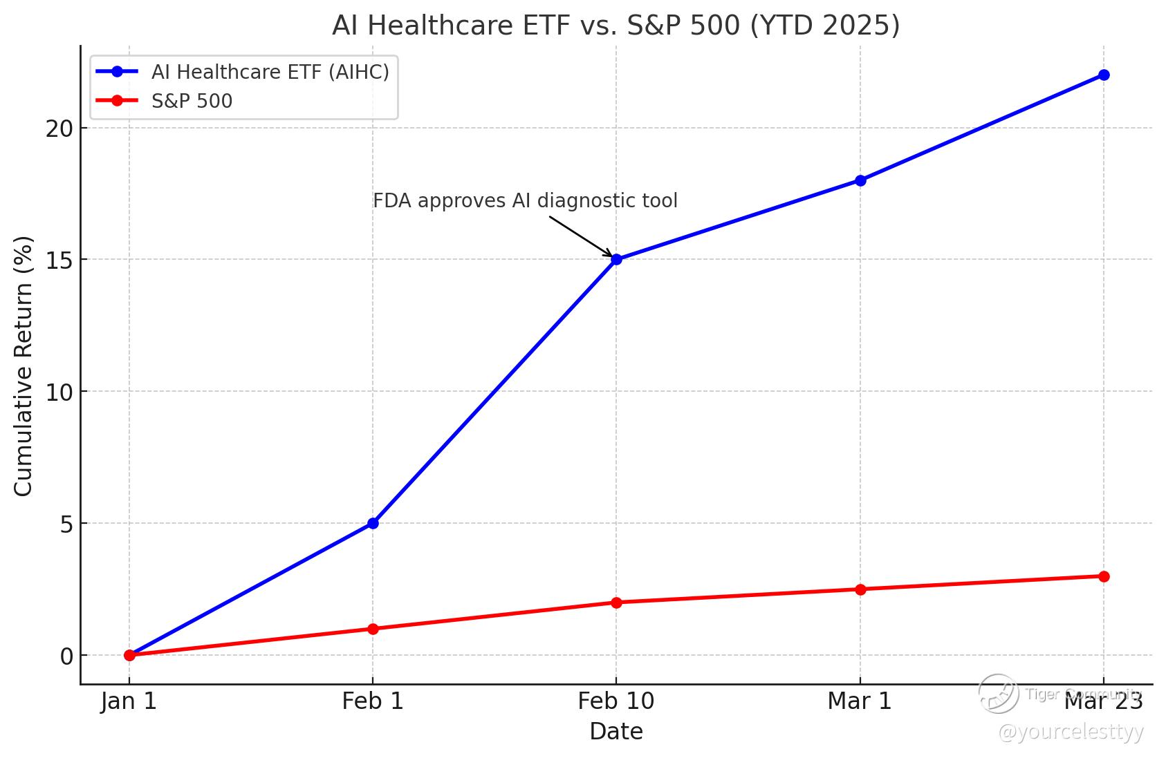 This graph would highlight how AI healthcare stocks surged after a key regulatory win, while the S&P 500 plodded along. It’s a stark illustration of where the action is in 2025.