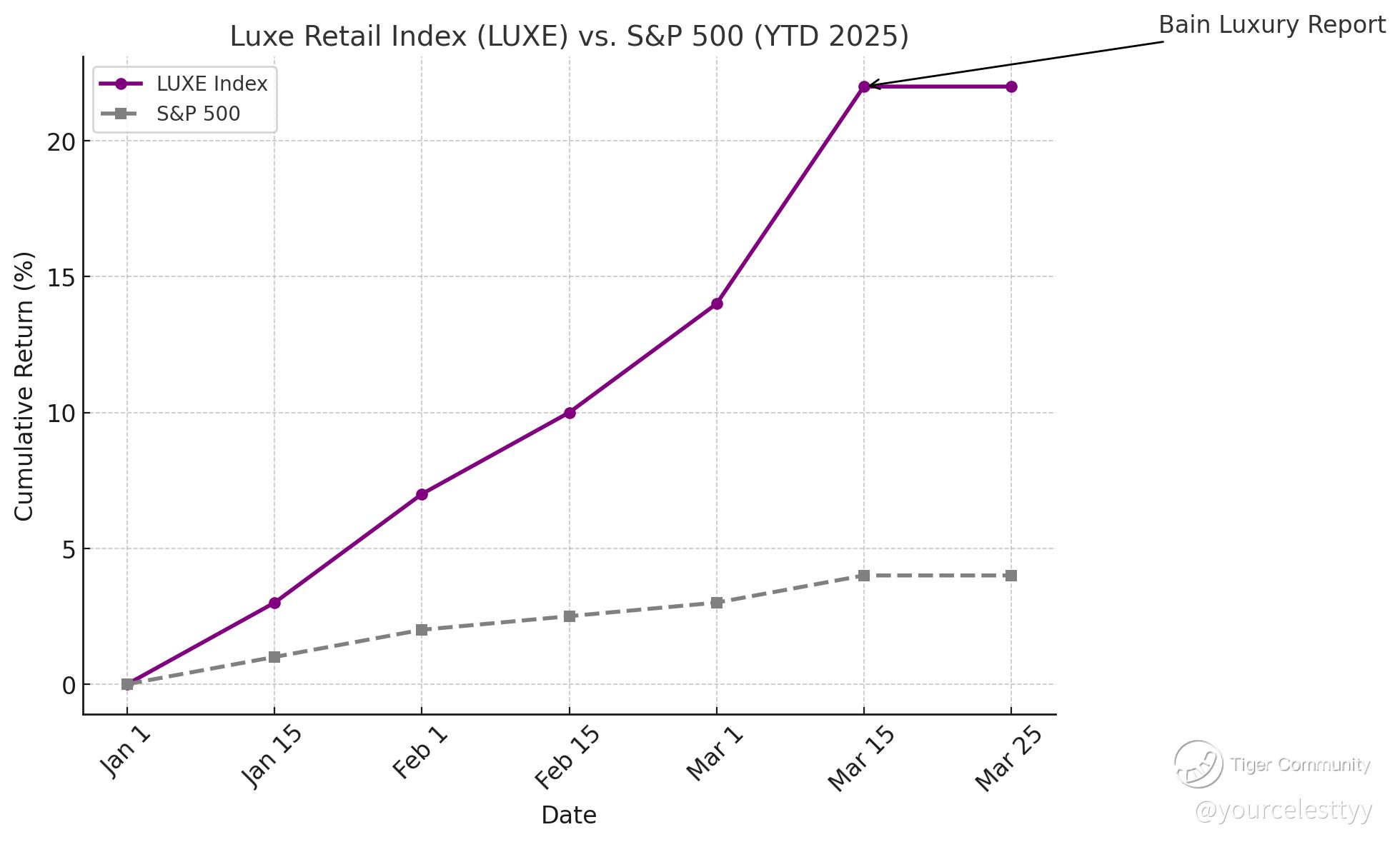 Luxe Retail Index (LUXE) and the S&P 500 for YTD 2025