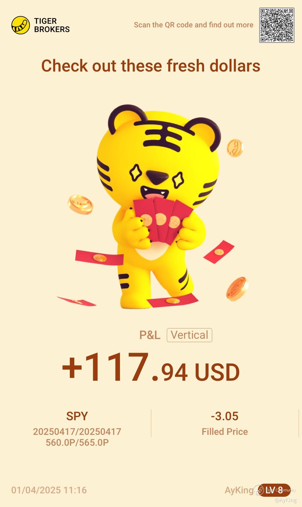 • Congratulations on your succeed trades. Well done on your recent profits! Your disciplined approach to investing is really shining through. Trade with Tiger Cash Boost Account and use contra trading to enhance your strategies.💹💰