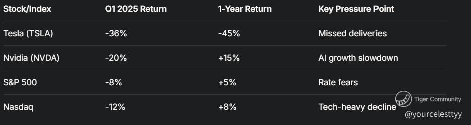 S&P and Nasdaq’s Worst Quarter Since 2022: Tesla and Nvidia in the Crosshairs