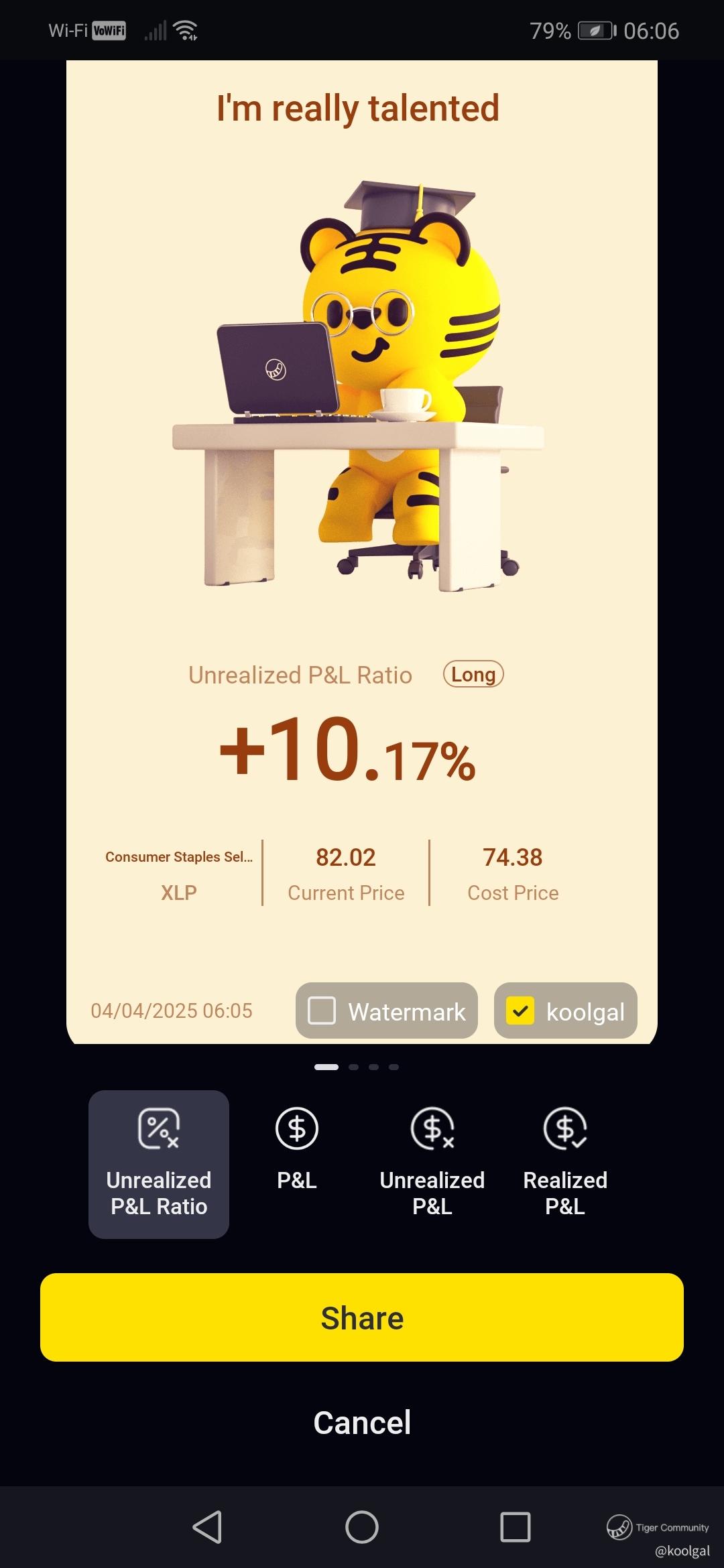 πππThe markets are in a sea of red after President Donald Trump imposed a far reaching reciprocal tariff policy that includes a 10% baseline tariff on almost every country. Amid this gloomy backdrop, $Consumer Staples Select Sector SPDR Fund(XLP)$ is up 0.58% on Thursday trading and has risen 1.3% in the past 5 days. XLP is now up 4.6% year todate and in 2024, XLP has risen 10%. In contrast $SPDR S&P 500 ETF Trust(SPY)$