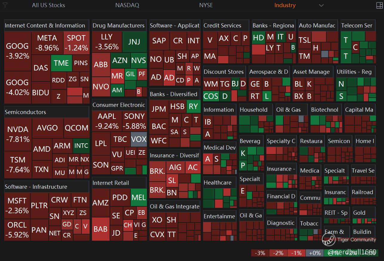 Small-cap Russell 2000 sank 6.6%. Large-cap tech and many discretionary-related industries faced heavy selling pressure.