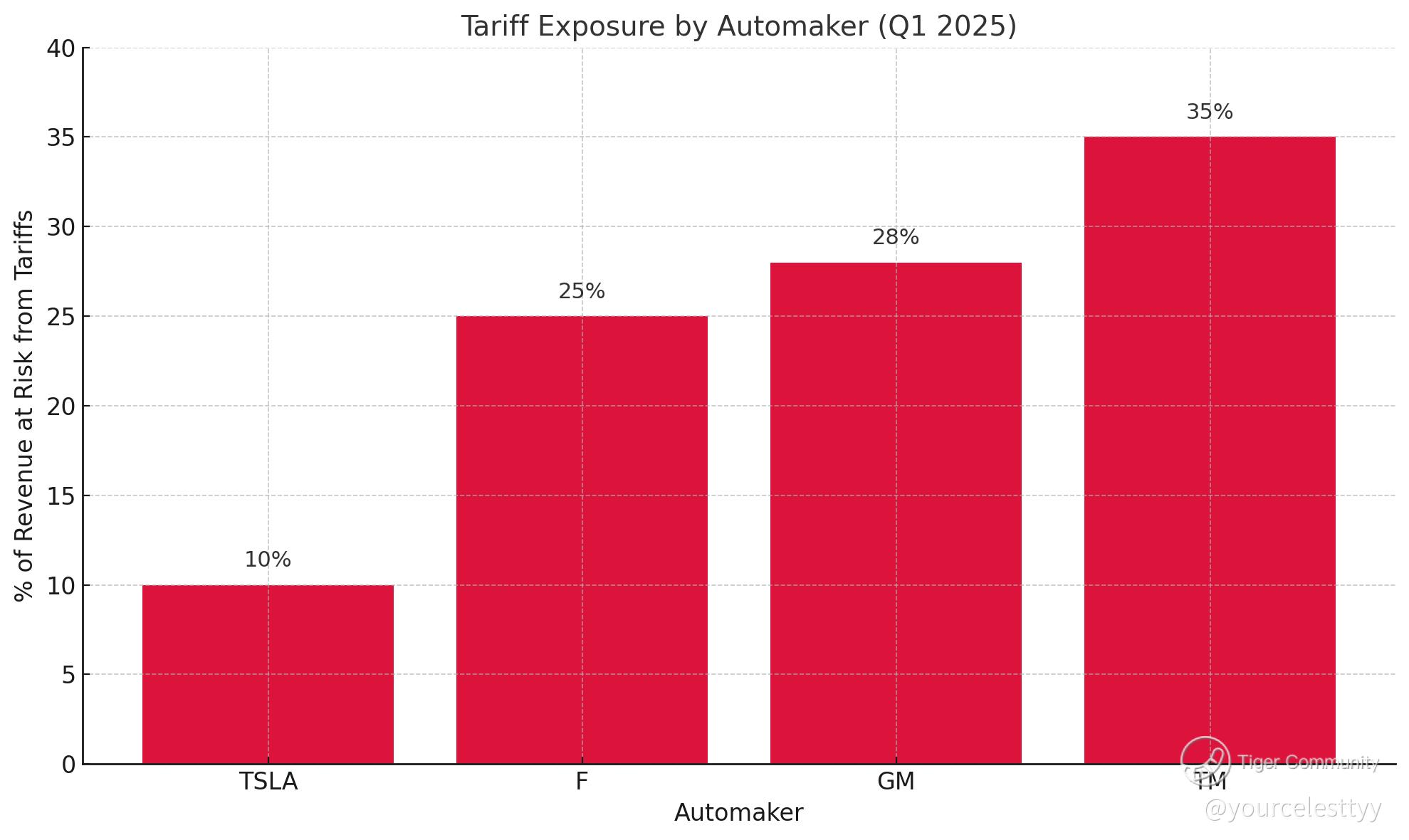 Tesla’s 100% U.S. assembly dodges vehicle tariffs, though imported parts (e.g., batteries) still face some heat. Compared to Toyota’s 45% U.S. production, Tesla’s exposure is lighter, giving it an edge in a tariff-heavy world.