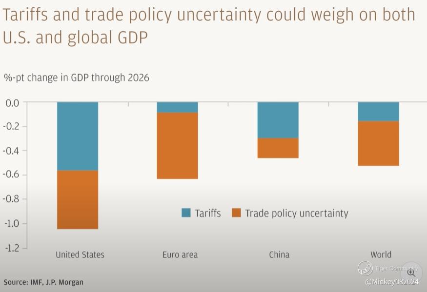 According to the IMF, global GDP could fall by 0.6% through 2026 as a direct result of these trade disruptions. China, surprisingly, may be the least impacted among major economies. But the U.S. is expected to take the brunt of the damage—with some projections estimating over a 1% hit to GDP once tariffs and trade uncertainty are factored in.
