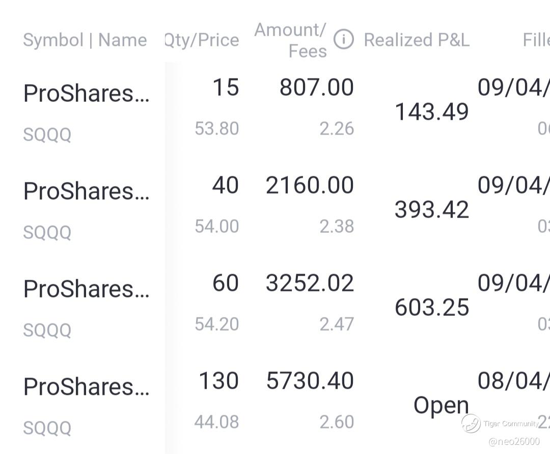 $Dow Jones(.DJI)$ "How I made some money from a 1800+ point DOW drop yesterday" — For those arguing it was only a 320-point drop, take a closer look. When futures spiked up 1000 points pre-market, I checked cnbc, marketWatch and all other news media, but there was no news to explain it. My simple conclusion was that it was just a technical rebound. So, I decided to queue up some inverse ETFs. That pre-market movement? Clearly a trap. Then, the market shot up another 300 pts on open. I thought, after +1300, what's next? Will it really keep climbing? People forget so quickly. In less than 24 hours ago, everyone had forgotten Trump’s 24-hour deadline to China. So, I bet on the inverse ETFs instead. Why I bet so little? Well, I can never be 100% sure. I only bet what I can afford to lose. The only thing predictable from Trump so far is that he has been consistent with his decades old tariff believe ...for worse or for worse.