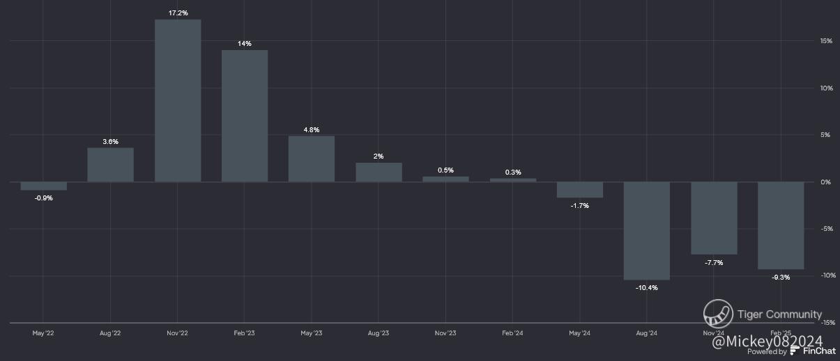 However, the numbers show that this isn’t just about tariffs. Nike’s revenue growth has reversed. In the most recent quarter, revenue declined by nearly double digits. This wasn’t isolated to one product line or one region—sales were down almost across the board.