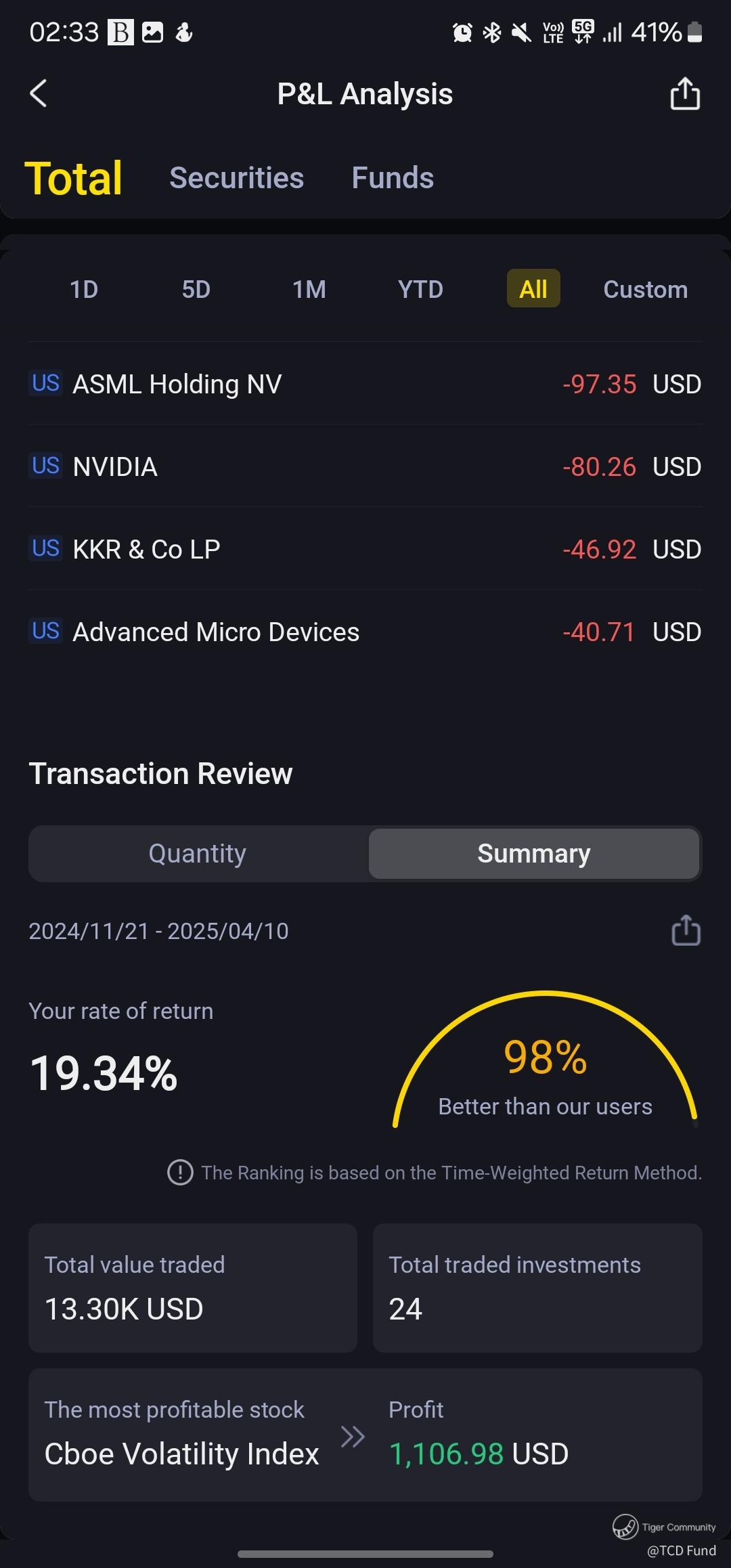 Now that trump has paused tariffs for 90 days, wanted to do a portfolio update. Unfortunately was not able to navigate the stock selections well since inception, whereby prices were at aths, this meant that when macroeconomic sentiment is changing from a bullish to bearish, dca doesn't work out. Identified that while I would not be able to determine what is going to happen during liberation date, there would probably be loads of volatility. Picked up vix calls to insure my portfolio, and found exit liquidity. Repurchased stocks at lower entry prices and lucked out with the 90day cool off. Unsure if we're still on track for a recessionary period and a change in the global supply chain as markets are just flooding back in with positive news. Hopefully this momentum will continue throughout the year #PortfolioUpdate