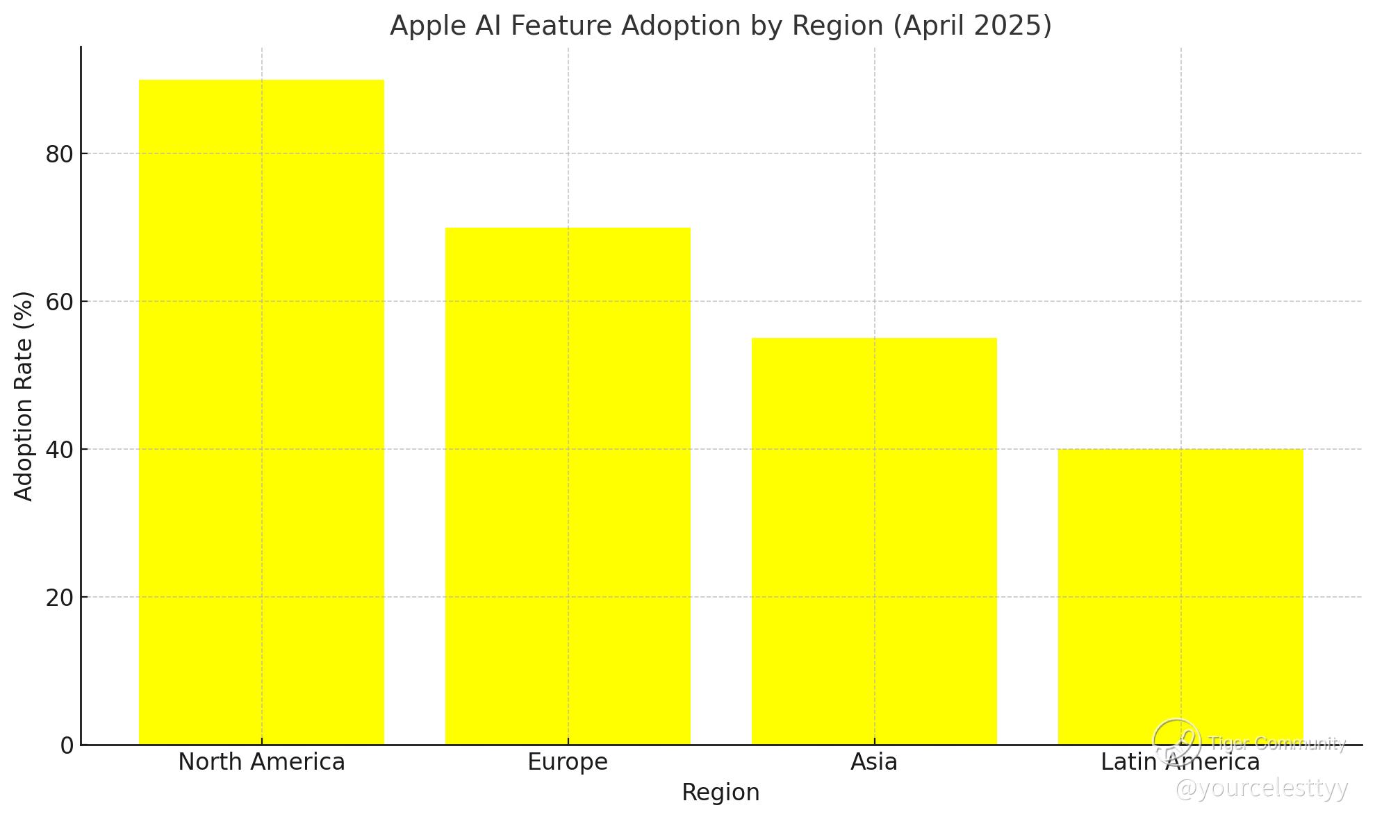 Apple AI feature adoption rates by region as of April 2025