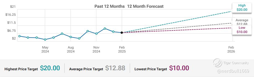 Based on 8 Wall Street analysts offering 12 month price targets for Applied Digital Corporation in the last 3 months. The average price target is $12.88 with a high forecast of $20.00 and a low forecast of $10.00. The average price target represents a 151.07% change from the last price of $5.13.