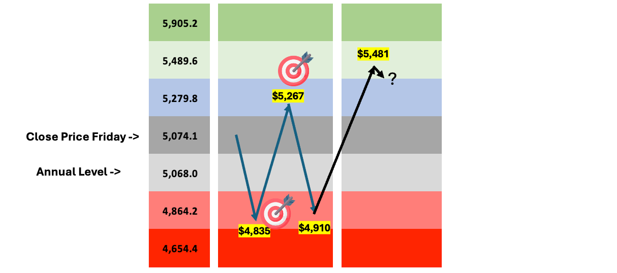 Last Saturday, using the weekly Support and Resistance levels, this diagram outlining the expected price action was shared with premium subscribers, presenting three distinct scenarios, all pointing towards a lower low. Once again, the price action unfolded with exceptional speed, completing the bearish move by Tuesday, but including the bullish move today.