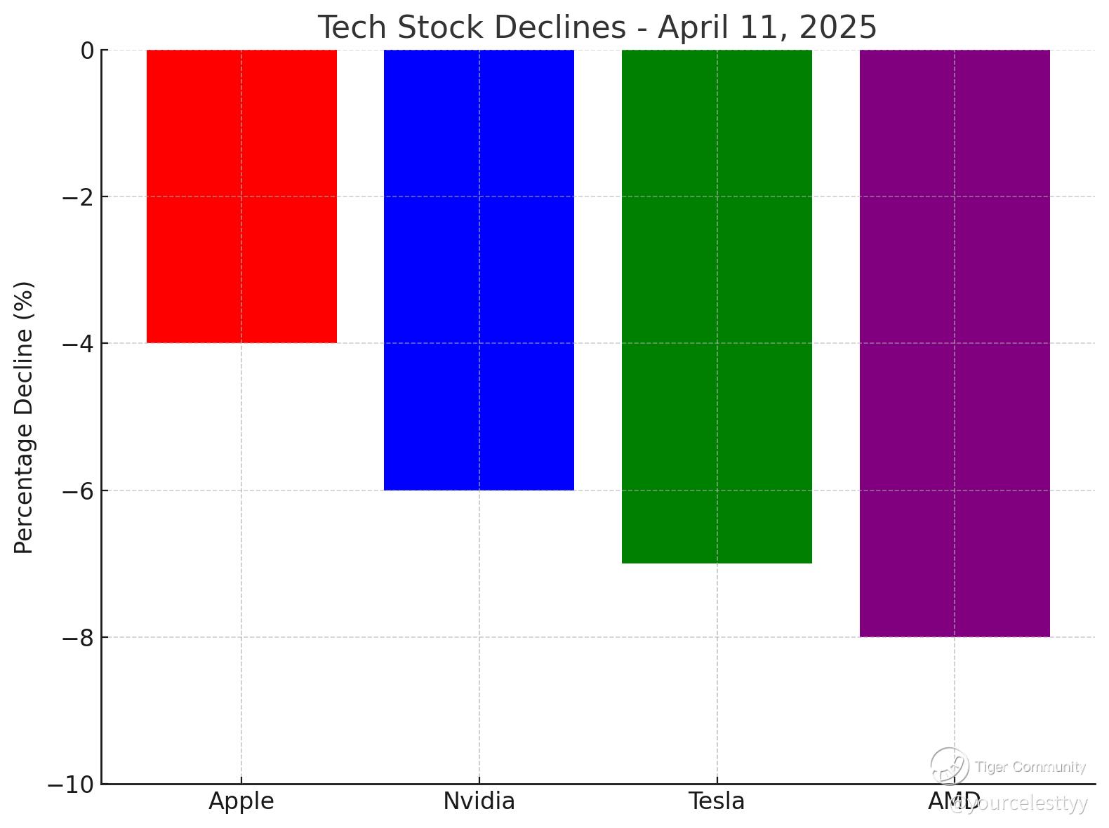 tech stock declines on April 11, 2025—Tesla and AMD took the hardest hits