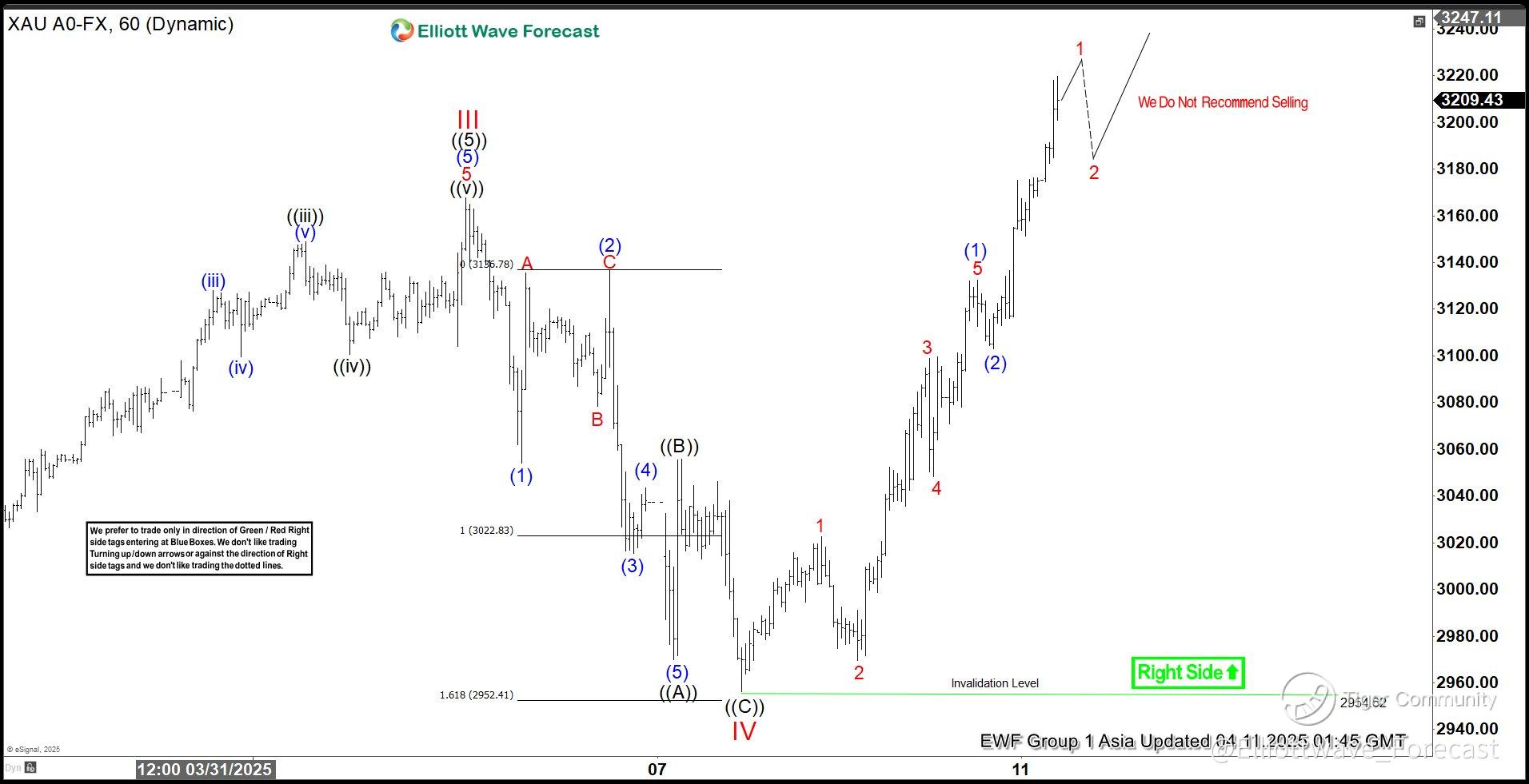 XAUUSD (Gold) 60 Minute Elliott Wave Chart