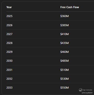 I modeled a steady but conservative trajectory of free cash flow: